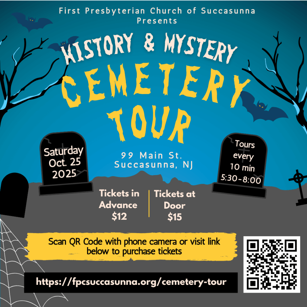 The cemetery of the First Presbyterian Church of Succasunna is a historic site with amazing and interesting back stories. Read about one such story in the Fall 2024 issue of Weird NJ magazine. Their are Native Americans, Revolutionary War & Civil War soldiers, NJ dignitaries, and many more interesting people interred in the cemetery. The oldest recorded grave dates to March 6, 1767. Recently, the cemetery completed a digitization project which chronicles all the grave markers on the land.